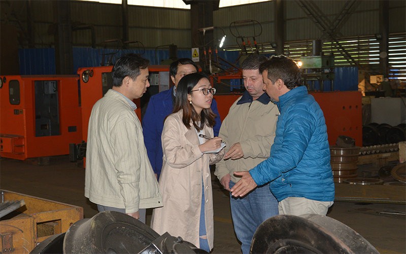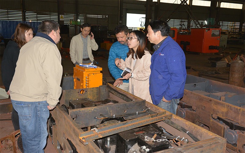 海外客戶來(lái)廠考察鋰電池湘潭電機(jī)車。