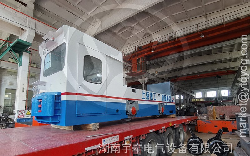 檢修完的25噸蓄電池湘潭電機車由專車發往上海。
